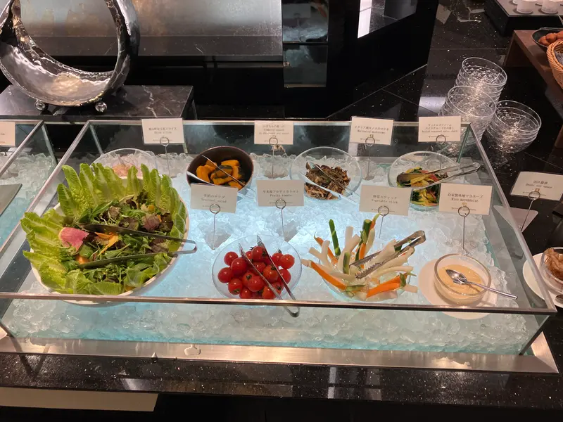 メインディッシュを頼んだら、ブッフェ台に好きなものを取りに行きます。