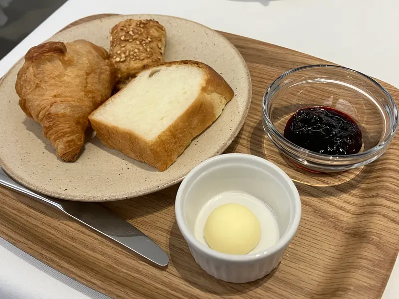 『自家製食パン』に『北海道産無塩バター』をつけて、お好みで『自家製ハスカップジャム』、『自家製イチゴジャム』をつけてどうぞ!