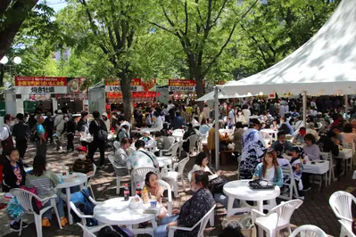 お祭りのメイン会場である大通公園では、西5・6丁目で「北のふーどパーク」を開催!期間中5日間にわたって各地の自慢の味を楽しめる、毎年大人気のコーナーです。メインステージやメインパレード会場も近いので、演舞と合わせて楽しみやすいのがポイント!