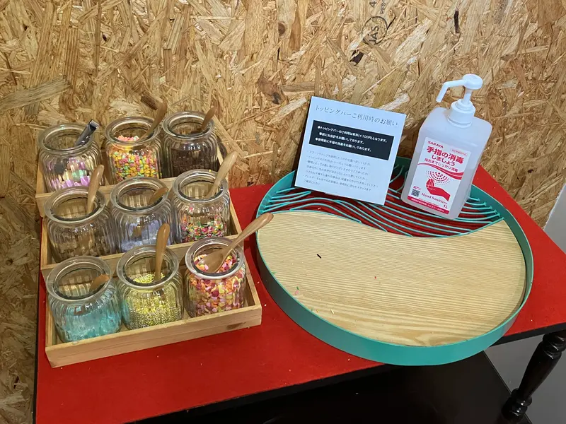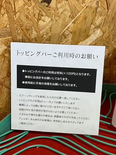 オプションでトッピングバー(プラス100円)があるので、付ける方は、事前に会計をします。