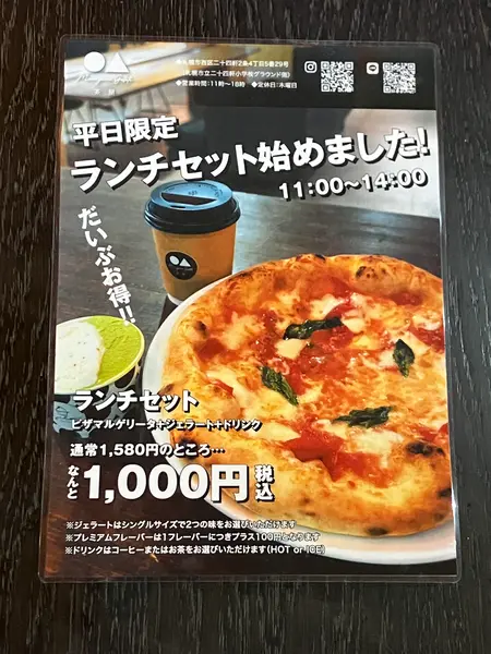 札幌市西区二十四軒に本店を構え、『ジェラート』の他にも焼き立て『ピザ』が美味しいお店です。