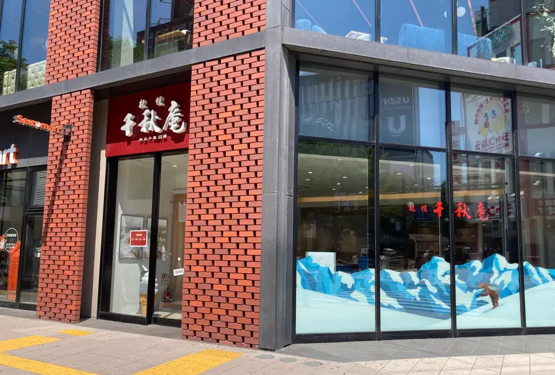 狸小路商店街(狸小路1丁目入ってすぐ)に、できたての焼き大福「ぽんぽこ焼き」が食べられる北のおみやげ館があります。