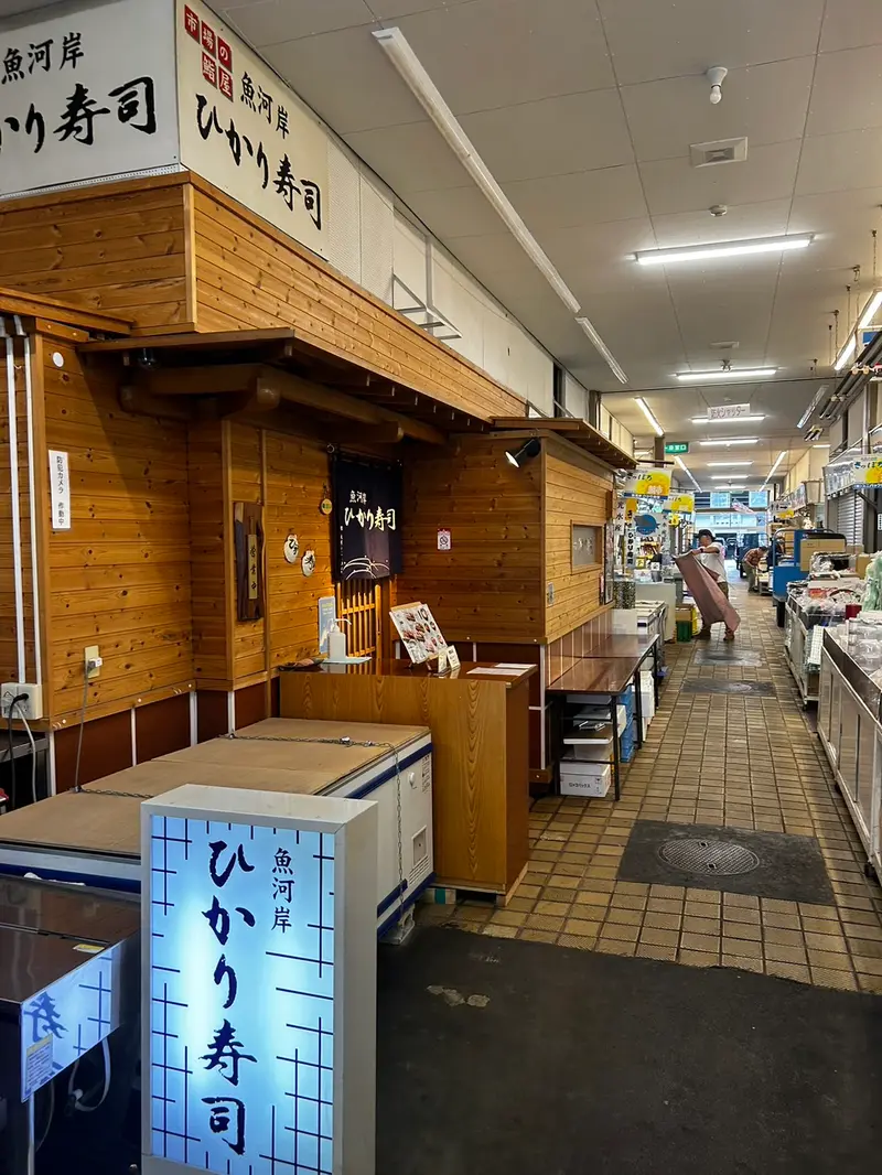 魚河岸ひかり寿司さんは市場の中にある昭和レトロ感と、仲卸業者ならではのネタの新鮮さが魅力です。