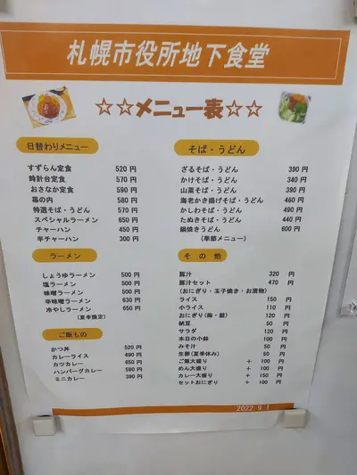 1971年の札幌市役所竣工の頃から営業を続ける地下食堂。2020年に受託事業者が変わっていますが、当時のメニューのほとんどが今も変わらず提供されています。