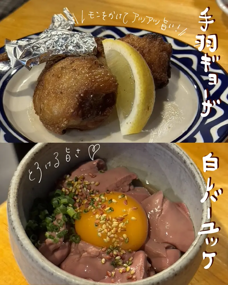 餃子のタネを中に仕込んである手羽はレモンをかけていただきます。