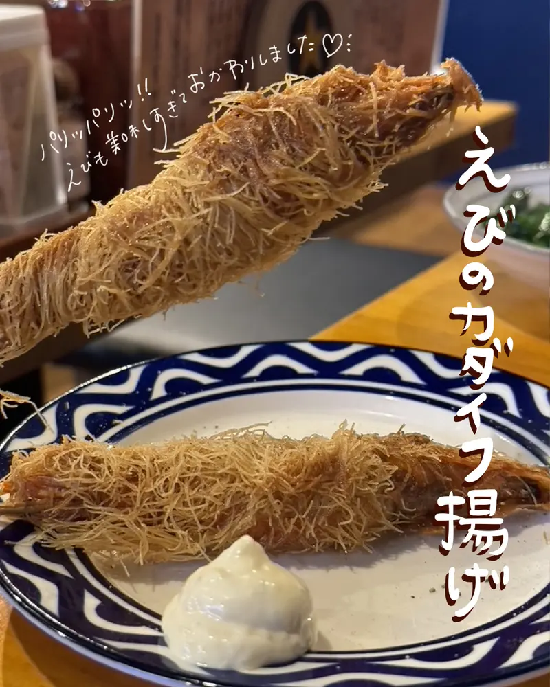 これがまたエビの頭は柔らかくジューシーで身も味がしっかり美味しくてカダイフがパリパリ楽しくて、おかわりしちゃいました!