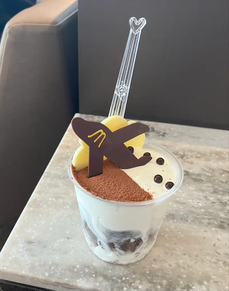 上の飛行機形チョコと雲形チョコのホワイトチョコ 全てのバランスがバッチリGOODなスイーツです。満足度高いです☆