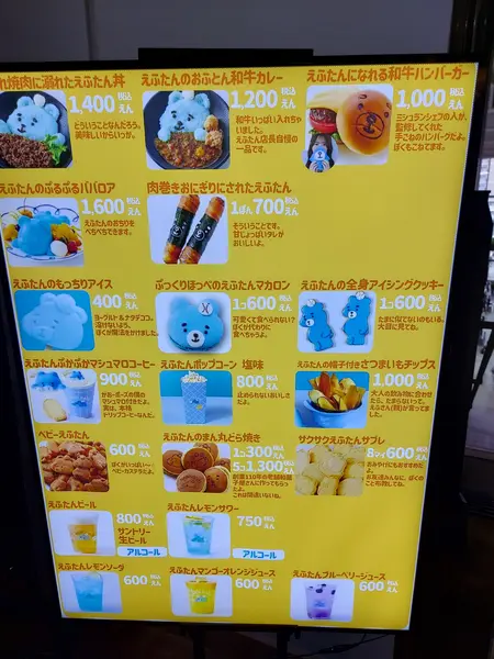 「しぐれ焼肉に溺れたえふたん(1,400円)」、「えふたんになれる和牛バーガー(1,000円)」、「ベビーえふたん(600円)」の3品を注文しました。