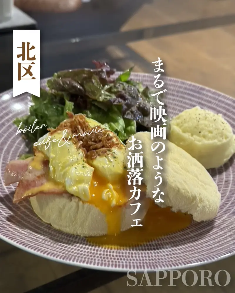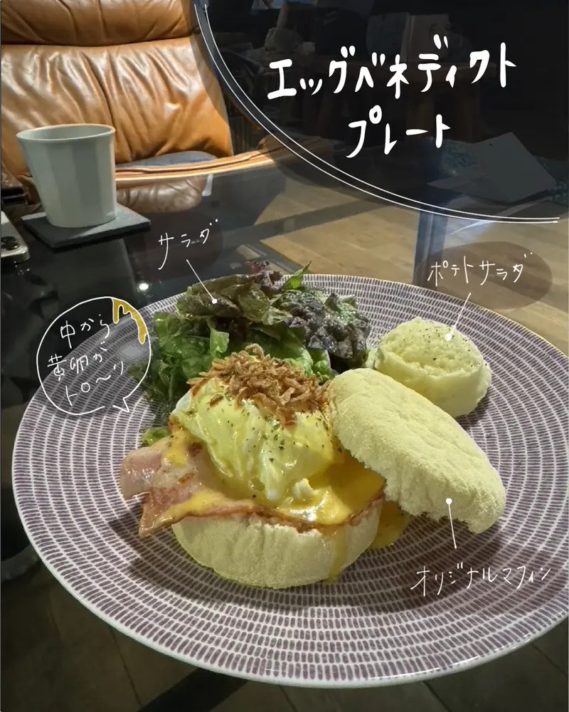 おしゃれカフェにぴったりなエッグベネディクトは、卵を割るととろ〜と黄身が溢れ出てとっても美味しい♪