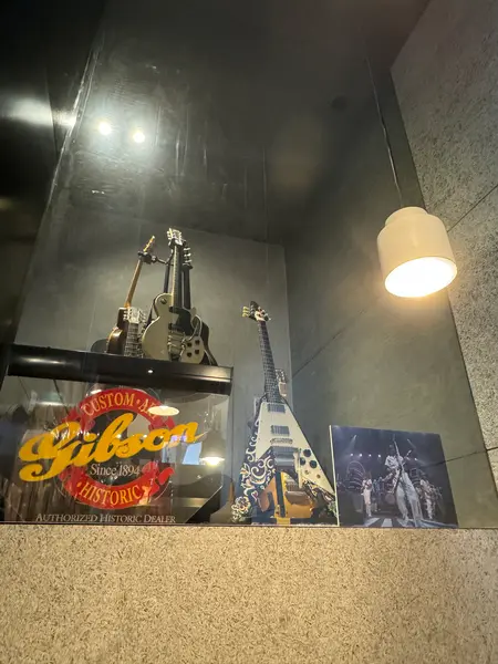 階段降りる正面に飾られているこちらのギター、奥田民生さんが使われていたレアもの!