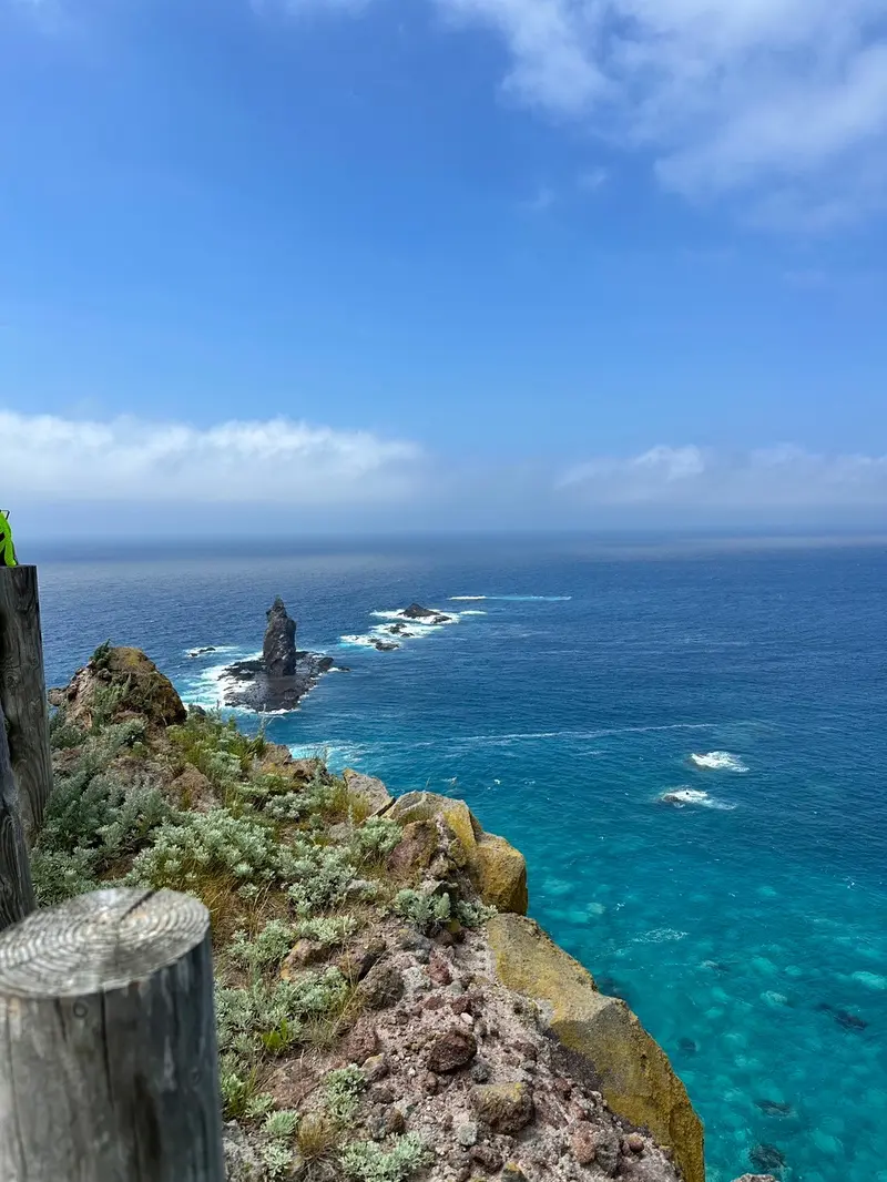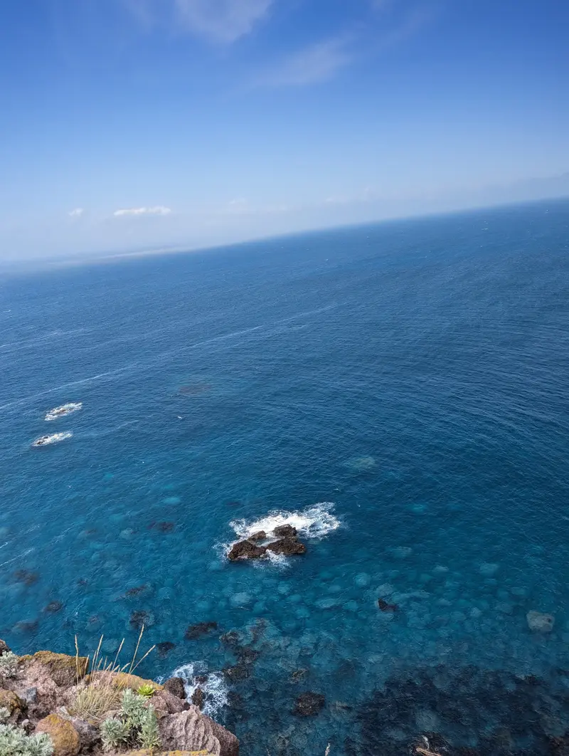 やっとの思いでたどり着いた岬の先端からは、360度の壮大な景色が広がり、穏やかな波の音を聞きながら心身ともにリフレッシュ。