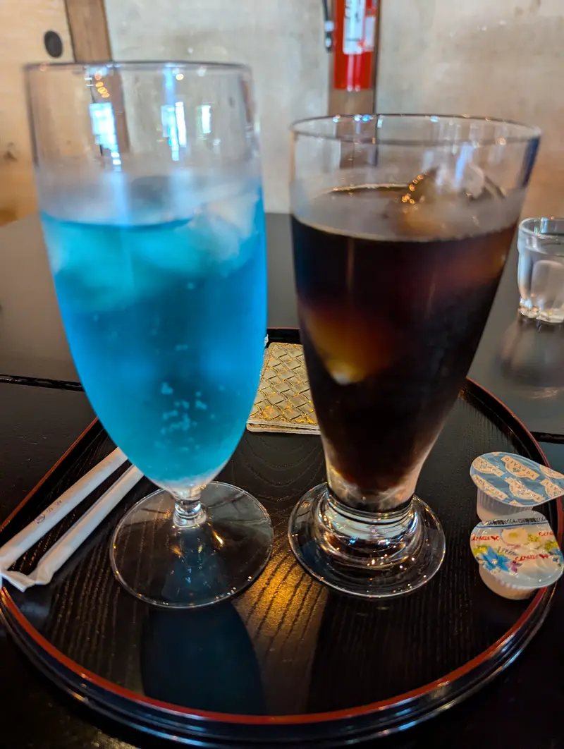 ひと通り見学したあとは冷たいブルーソーダでひと息。