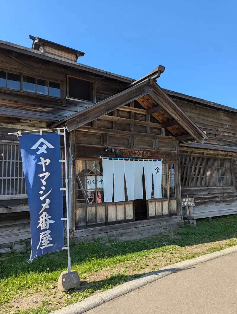 積丹水中展望船「ニューしゃこたん号」の乗船乗り場から歩いて5分の「鰊伝習館ヤマシメ番屋」へ。明治末期、約110年の歴史を持つ建造物。