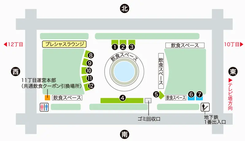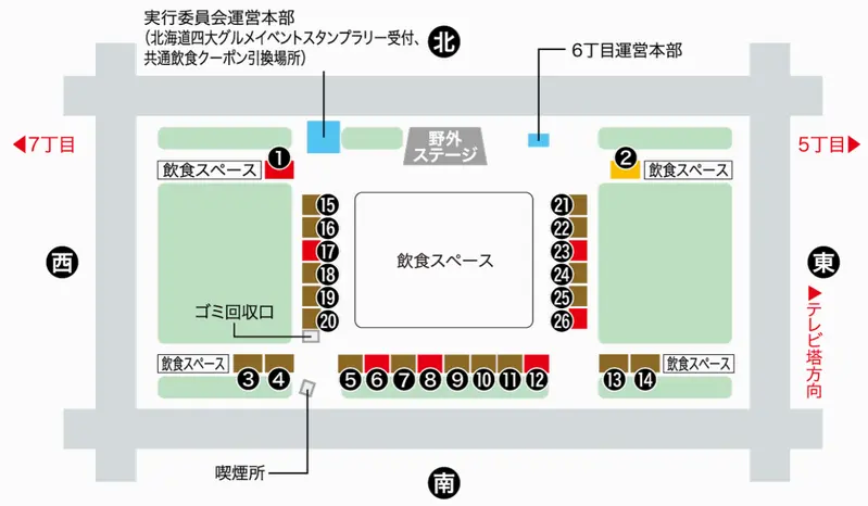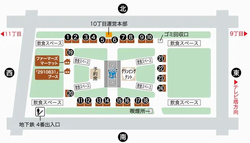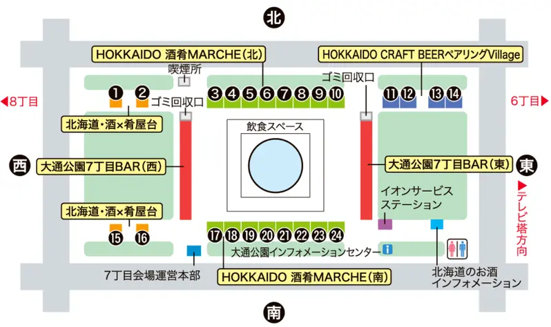 さっぽろオータムフェストの会場は、大通公園4丁目~11丁目(9丁目を除く)の中でテーマが分かれた7つの会場ができ、300近いお店が出店します。(一部会期中の入れ替わりあり)