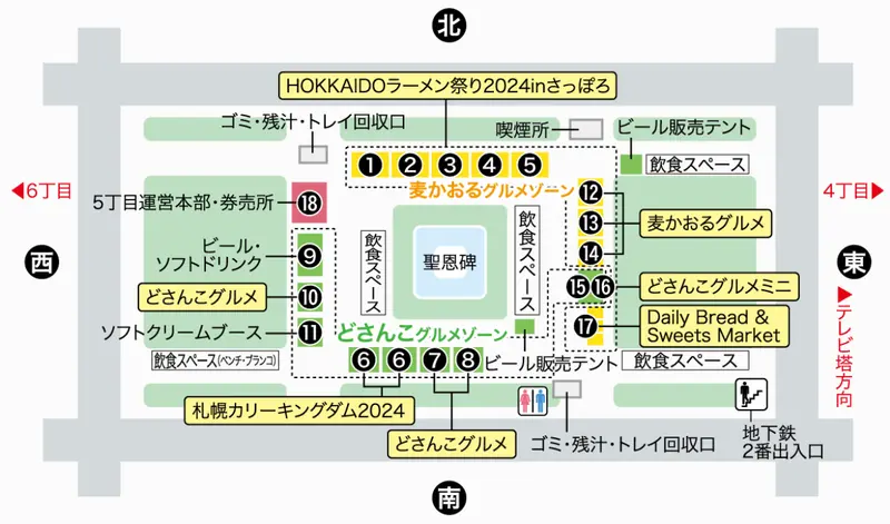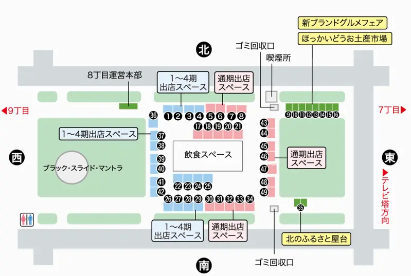 北海道内の市町村、団体約80ブースが4期に分けて入れ替え出店するのが、8丁目会場「さっぽろ大通ほっかいどう市場」です。