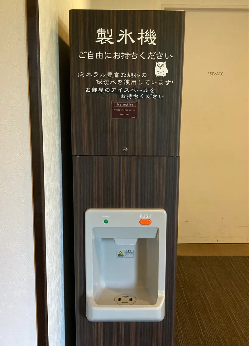 大浴場前:画像は2日目朝の様子です。乳酸菌飲料は冷蔵庫の中で冷えてます♪