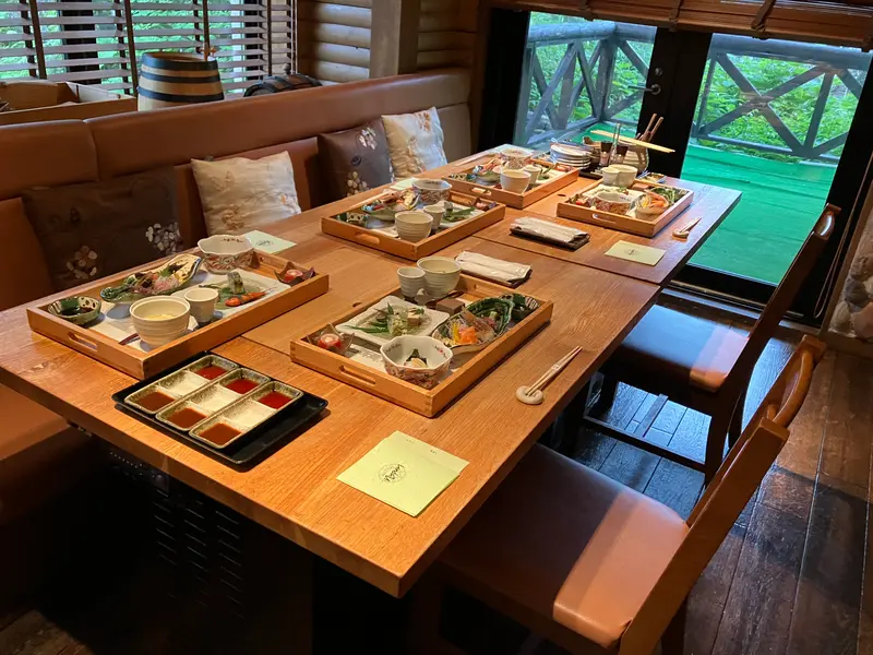 どちらも 利用時間は 17:30〜20:30(L.O)ですが、洋食・和色ともコース料理のため、事前に開始時間(17:30〜・20:00〜の2部制 入れ替え方式) を指定して その時間に行くことになります。