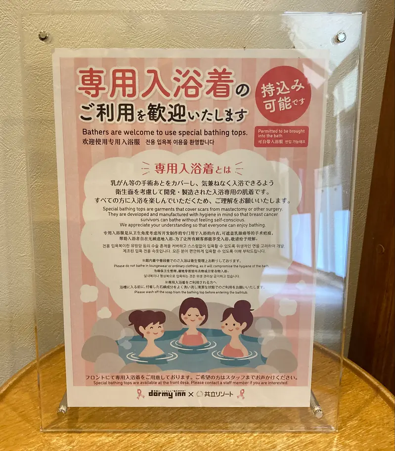 全国のドーミーインと共立リゾートが 手術痕を覆う「専用入浴着」の普及に力を入れているようで、ラビスタ大雪山でもレンタルできます!詳しくはコチラ。