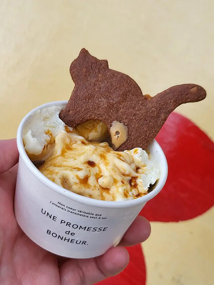 猫ちゃんのクッキーにアイスを付けながら食べると、食感と香ばしさがプラスされてより美味しいですよ♪