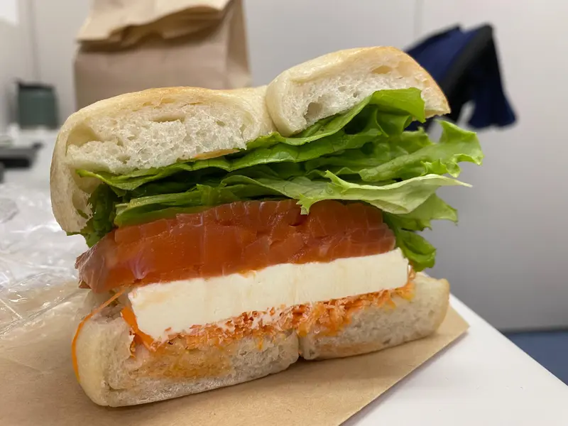 ベーグルサンドは具もぎっしり入っていて食べ応え抜群ですよ!