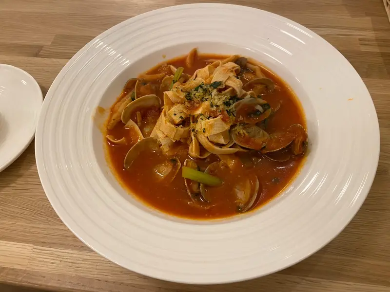 私はボンゴレロッソ豆葉を注文。