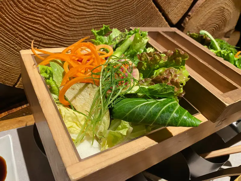 出汁の中にお野菜を投入し、しゃぶしゃぶスタートです!