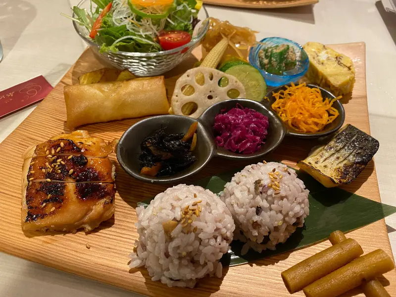 こちらは、おかずは7~9品のっているワンプレートで、バランスが取れたラインナップになっています。