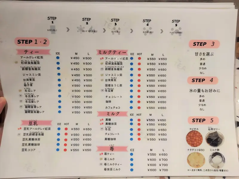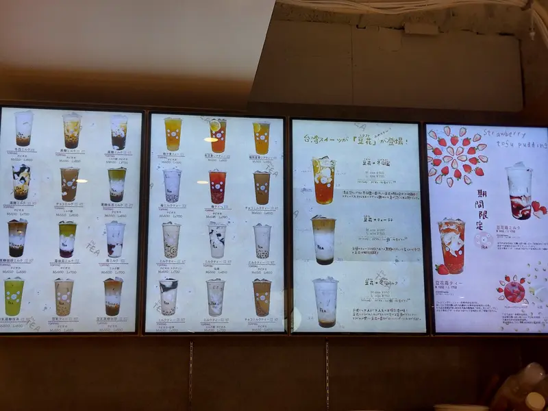 お茶の種類が8種類?あったり、ミルクか豆乳も選べたりと慣れていないと一回思考が停止するくらいにはメニューが豊富です。