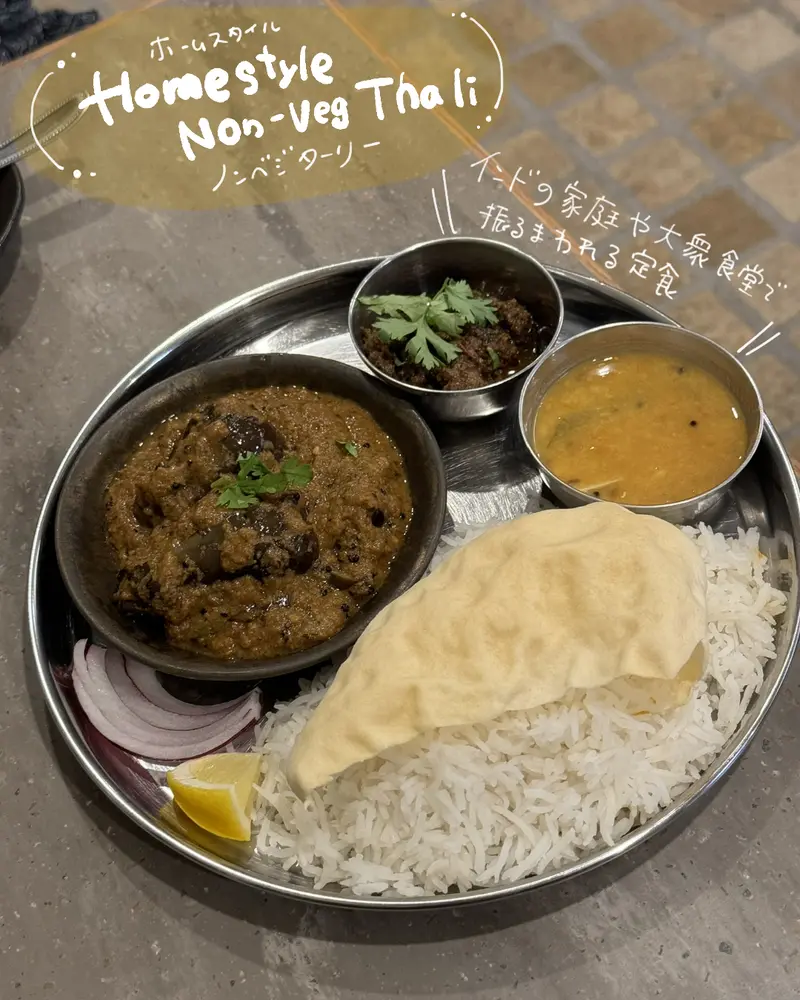 日本でいうメインのおかずにごはん、味噌汁、漬物、副菜みなたいなかんじでカレーの他に色々ついていますね^^