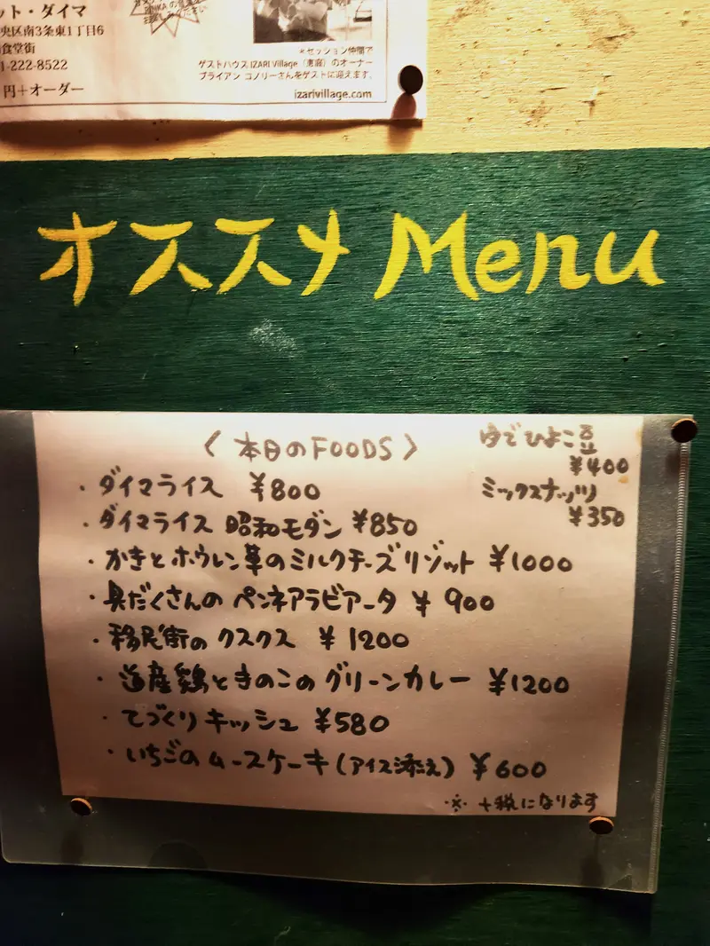 実際にお店では定期的にガンゲットとしてアコースティックのライブも行われ、創成イーストの夜をミュゼットが彩る。狸小路がシャンゼリゼ通りならば、創成イーストは洒落た下町であるモンマルトルさながら。お酒が飲めなくても、雰囲気と絶品料理に舌鼓打って欲しい。代表メニューの「ダイマライス」はいわゆる「アジアンテイストチャーハン」で、これもまたエキゾチックなのにほっとする味わい。