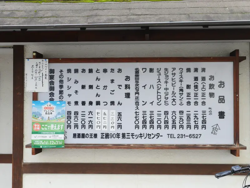 昭和元年、角打ちとして歴史を刻み始めて今年でなんと創業98年。創成イーストの風情を形成してきた第三モッキリセンターにまずはご挨拶。札幌でなかなか見られない、王道を往く大衆酒場。