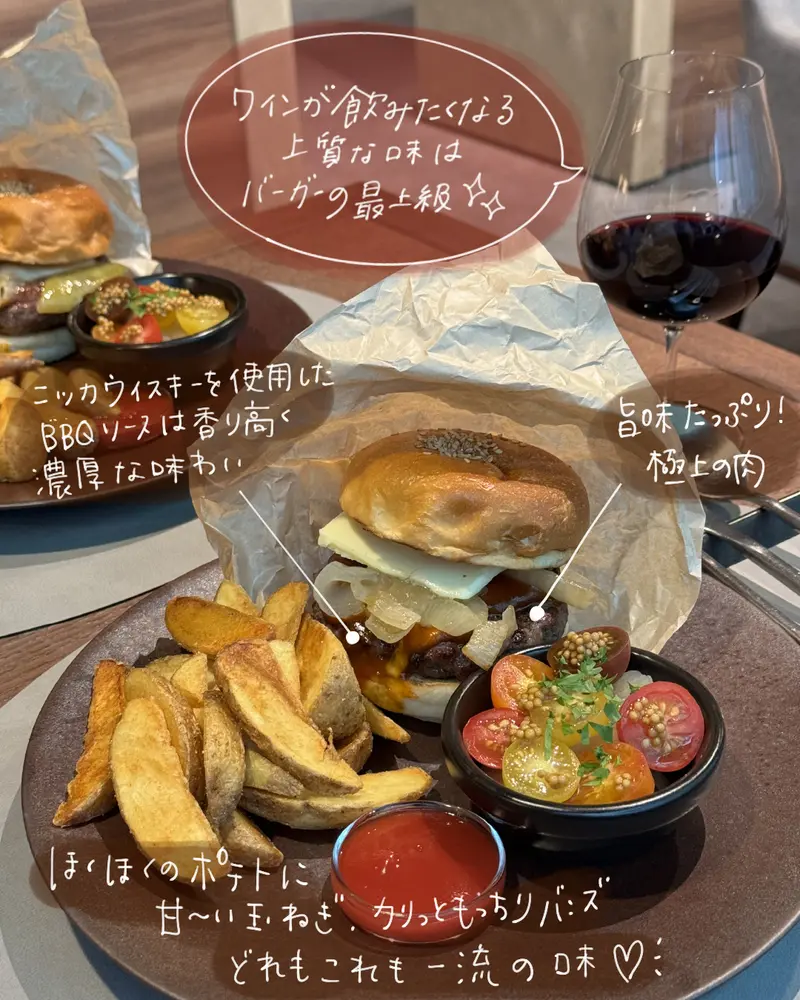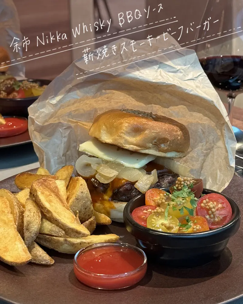ランチで人気の高いメニュー、余市 Nikka Whisky BBQ ソース薪焼きスモーキービーフバーガーを食べてきました♪