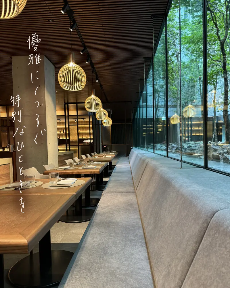 デザイン性の高いインテリアや、外とつながりをもたらしてくれる中庭の大きな窓がとても開放的で、ラグジュアリーで贅沢なランチタイムを過ごすことができますよ♡