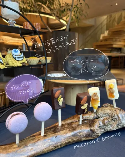 一口サイズのブラウニーポップや、紫色が綺麗なブルーベリーマカロン♪