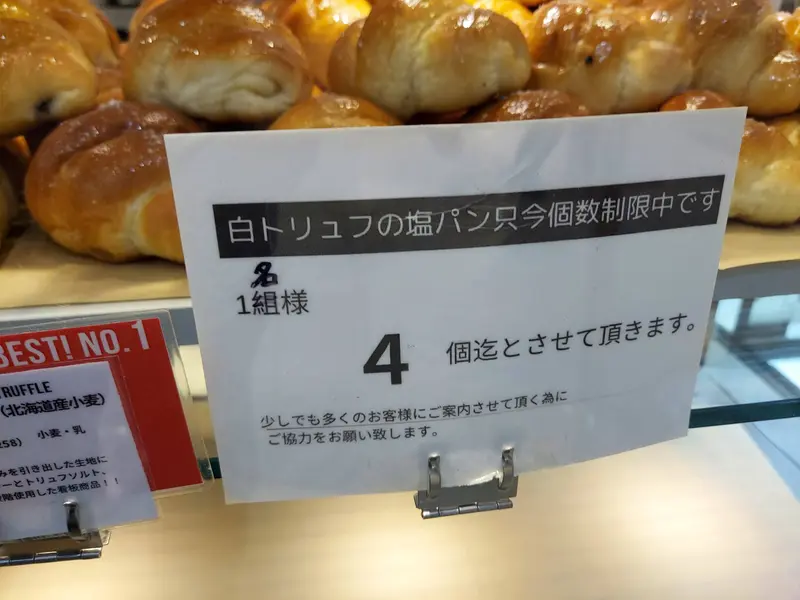 白トリュフの塩パンは個数制限で、1名様あたり4個までとなっていました。