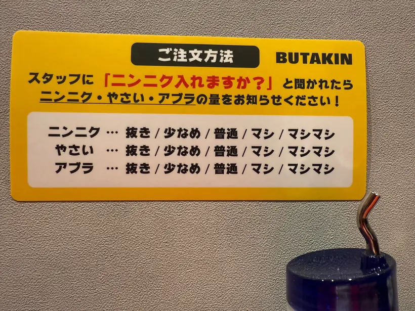 BUTAKINでは、「ニンニク」「やさい」「アブラ」をカスタマイズできます。