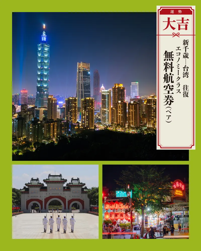 新千歳―台湾往復“エコノミークラス”無料航空券(ペア) ・・・1名様