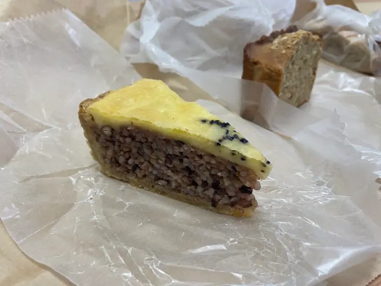 キッシュはベースがパイ生地になっており、上にはたっぷりのチーズ、中に玄米がぎっしり詰まっています!玄米はプチっともちっとした食感です。他のパン屋さんでは見たこともないです。物珍しいですが、味は絶品。チーズの塩味もいい感じ。すべてがマッチしています◎めちゃくちゃ腹持ちいいのでランチにもおすすめの逸品です!