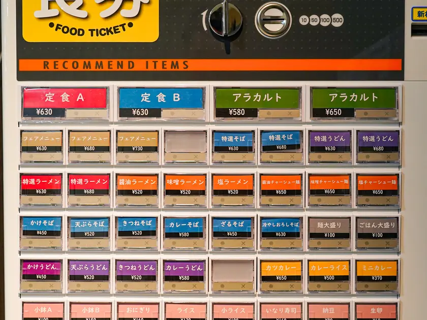 入口には券売機があるので、まずはここで食券をお買い求めください。いやぁ、どれを食べようか悩みますね〜