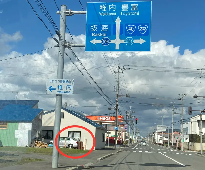 道の向こうに「民宿さとう」発見!(車窓撮影御免)
