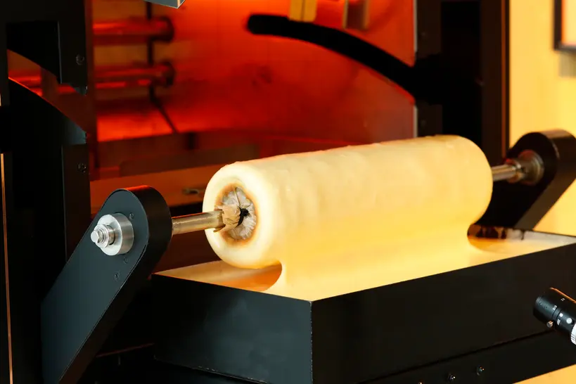 注目すべきは、AIが焼き上げる「焼きたてバウムクーヘン」コーナー。AI焼成機「THEO(テオ)」が作るバウムクーヘンは、たまごの風味豊かでふわふわの食感が特徴。各日決まった時間に焼き上がり、1個432円(税込)で販売されます。出来たてをその場で味わえる、まさに“バウムクーヘンのライブ体験”です。
