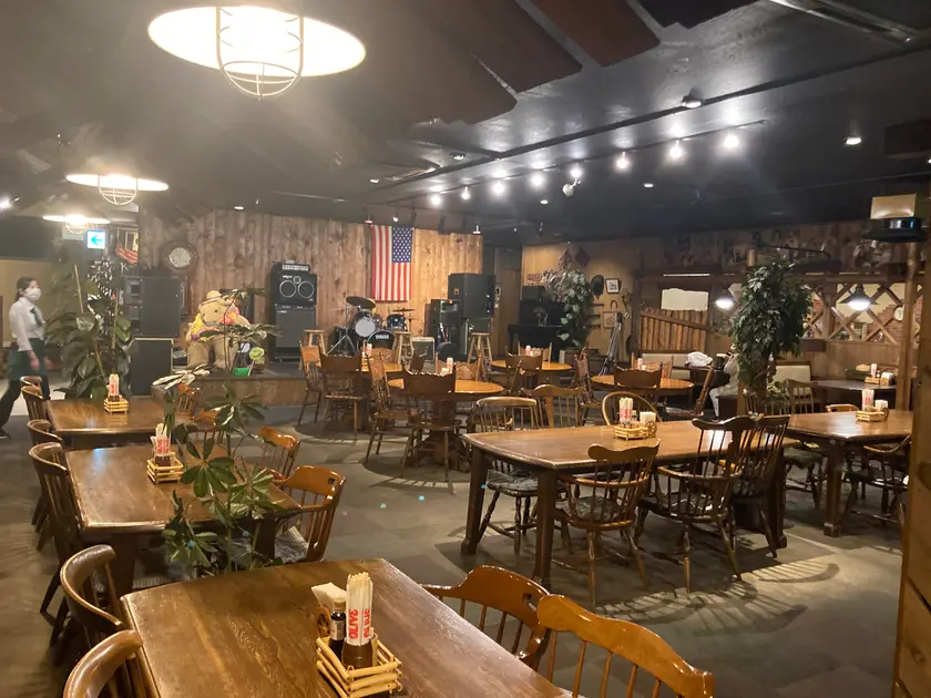 ステージがあってライブができる環境が整っているみたいです。ウエスタン風の内装だからか、どこからかバンジョーの音色が聞こえたり、保安官が現れそうな気配があります。(気のせいです笑)