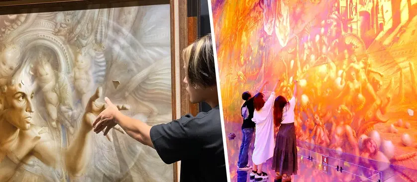 展示されているのは、ジェラール・ディマシオ氏による高さ9m×幅27mの巨大油彩画。そのスケール感は、写真では決して伝わりきらない圧倒的な迫力。目の前に立った瞬間、「異世界に引き込まれるような没入感」に包まれます。