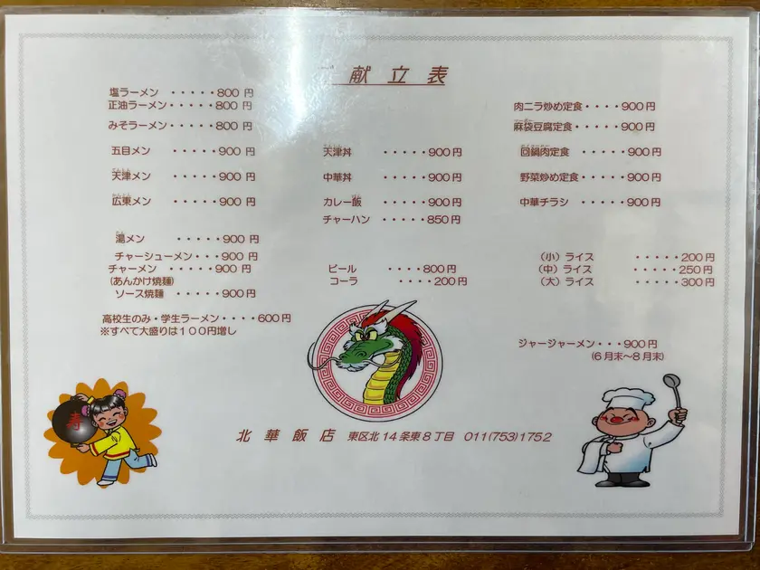 そして画像はありませんが、チャーメンと並んで人気なのが「回鍋肉定食」。かなりの注文率で「北華飯店といえばホイコーロー!」という人も多く、お店の看板メニューとなっています。