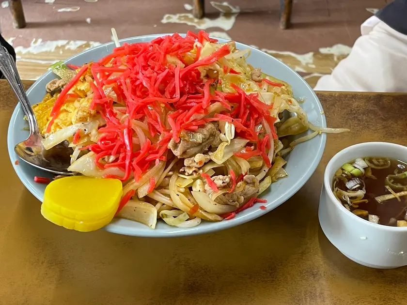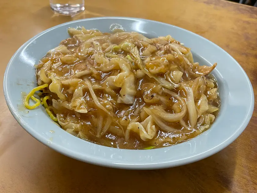 そしてこの『チャーメン』、麺がめちゃめちゃウマい!硬めでコシがあって黄色みが強い中華麺。ところどころ焼目がついていて香ばしく、パンチのある餡とよく合います。この手のメニューは見た目も、味も、上にかかる餡にとらわれがちですが、麺類なんだからそもそも麺が美味しくなきゃ!という気持ちにさせられます。