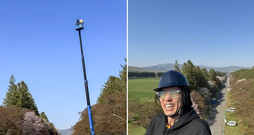 - 高所作業車による桜並木の上空展望(大人1,000円/子ども500円)