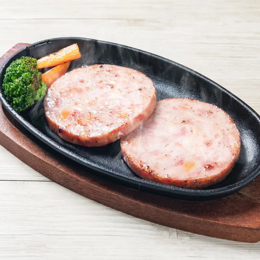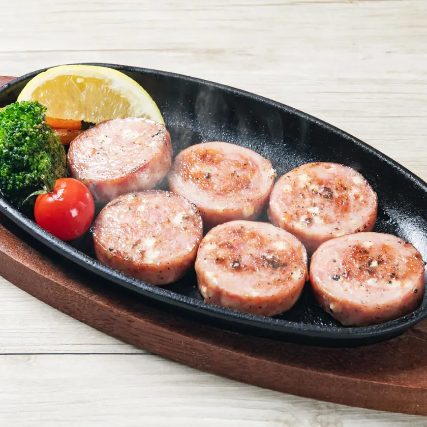 ウインナーで使用しているお肉をアレンジし、大口径のボロニアソーセージをスライスしたステーキです。粗挽きのお肉は噛めば噛むほどふかがわポークのうま味があふれ出して絶品!オリーブオイルで香りをつけて焼くのがおすすめです!