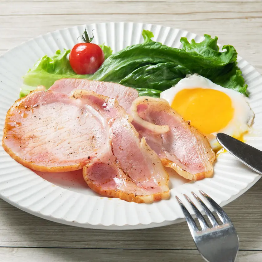 原料のロース肉を塩漬熟成して、肉本来のうま味を引き出すように丁寧な製法で製造しています。ロース肉はきめが細かく軟らかで、高級部位で、程よくついた脂肪の甘みが特徴です!
