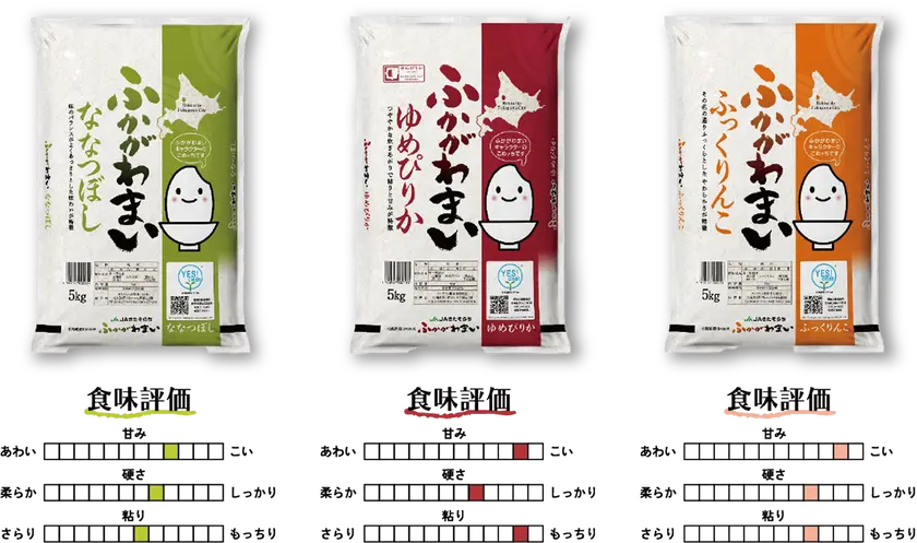 実は、お米の美味しさを格付けする「米の食味ランキング」というコンテストが毎年全国規模で開催されているのですが、深川で生産される「ゆめぴりか」「ななつぼし」「ふっくりんこ」は、どれも最高評価「特A」の常連で、味の良さが全国的にも認められているんです!