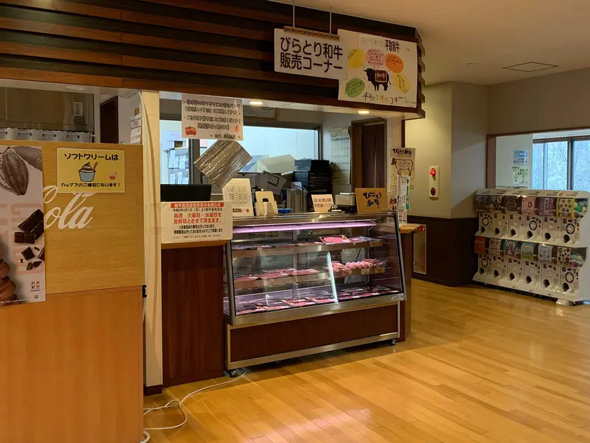 館内にお肉屋さんがありました。びらとり和牛直売店です。家でもびらとり和牛が楽しめますね。お土産にしても喜んでもらえそう。